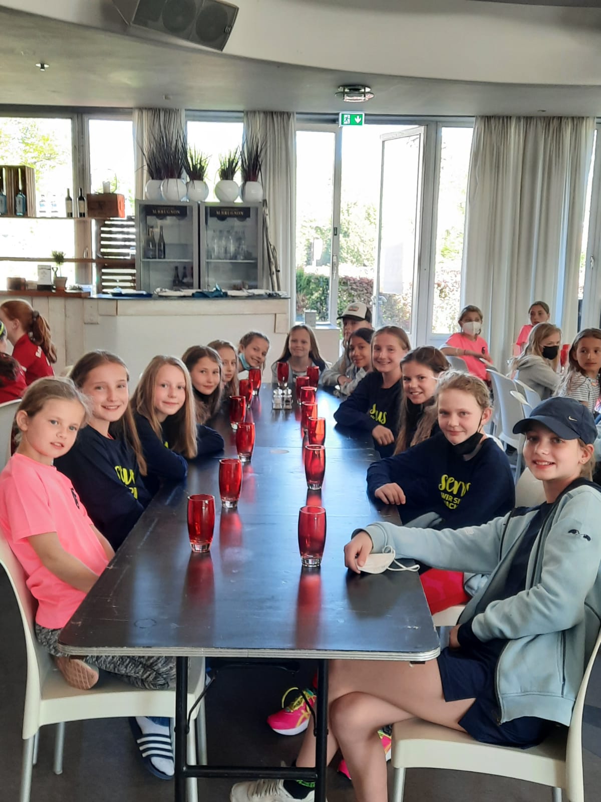 Zum Frühstück am nächsten Morgen um 7:30 Uhr schafften es trotzdem alle pünktlich und der Sport rückte wieder in den Vordergrund. Denn an diesem Mittwoch standen bereits die ersten beiden Trainingsspiele gegen Rot-Weiß Köln an, einem Verein, der sowohl bei den Herren als auch bei den Damen in der Bundeligaspitze vertreten ist. Abgemacht waren auf beiden Seiten 2 Teams, so dass Barbara und Nadja mit Trainingsgruppe 2 vorfuhren, während Ralf und ich mit Trainingsgruppe 1 eine gute Stunde später nachfolgten. Bewegt wurde sich innerhalb Kölns mit der Straßenbahn, bzw. korrekter Weise „Stadtbahn“, wie Tara nach 2 Tagen intensiver Recherche berichten konnte, da es sich um eine Kombination aus Tram und U-Bahn handelte. Und alleine diese Fahrten sind mit dieser Truppe ein absolutes Erlebnis: es wird sich keinen Zentimeter bewegt, ohne das Kathas Bluetooth-Box die Papesche Playlist abspielt, die zu meiner großen Freude aus bis zu 3 verschiedenen Songs bestand; aber wenn man die oft genug und laut genug hört…bleiben die immer noch gruselig. Meine autoritäre Ansage, dass dieser Krach aber keinesfalls innerhalb der Bahn abgespielt wird, wurde mit einem leicht überraschten „selbstverständlich nicht“ quittiert, woran sie sich wirklich in beeindruckender Präzision hielten.